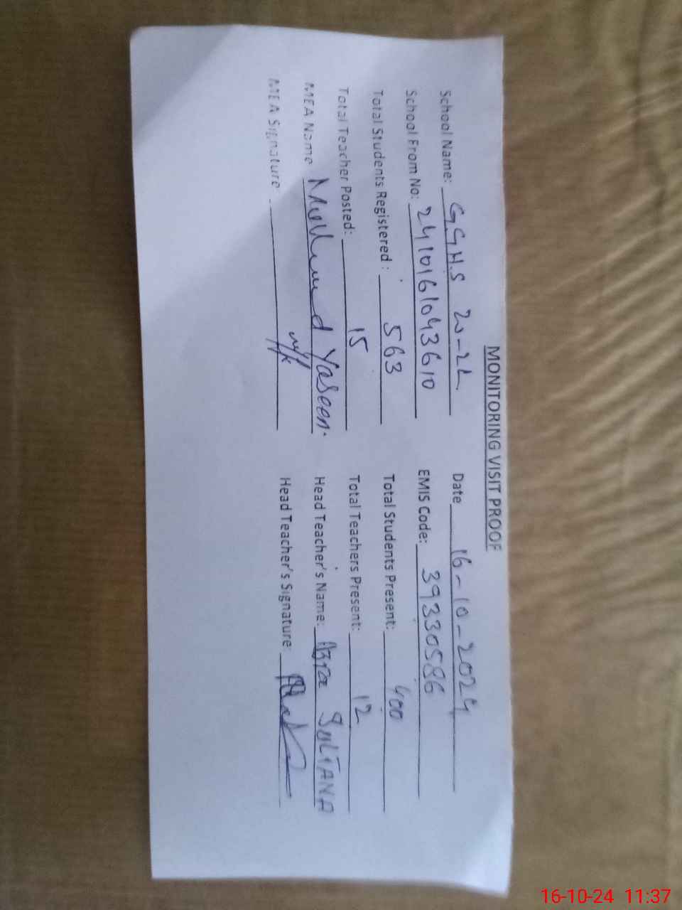 | EMIS Code: 39330586 | Name of School: GGHS CHAK 20/2-L | |||