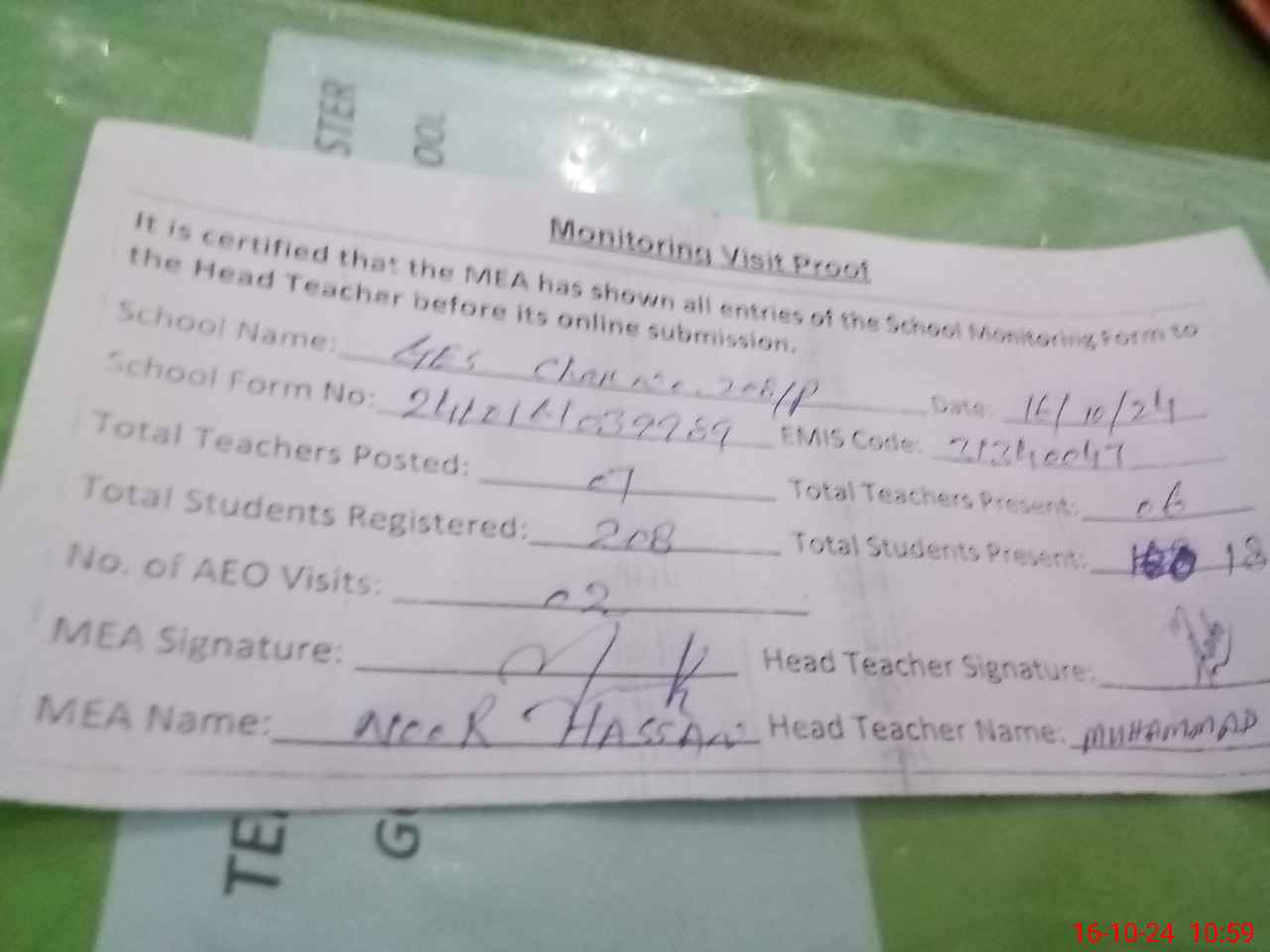 | Certified that this School was Inspected by the Undersigned MEA/DMO Today and the Information Stated Above is as Per Record. | |||||