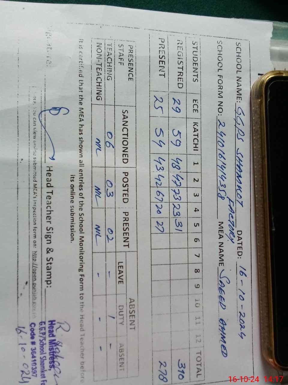 | EMIS Code: 36410397 | Name of School: GGPS SHAM KOT FACTORY, KABIRWALA | |||