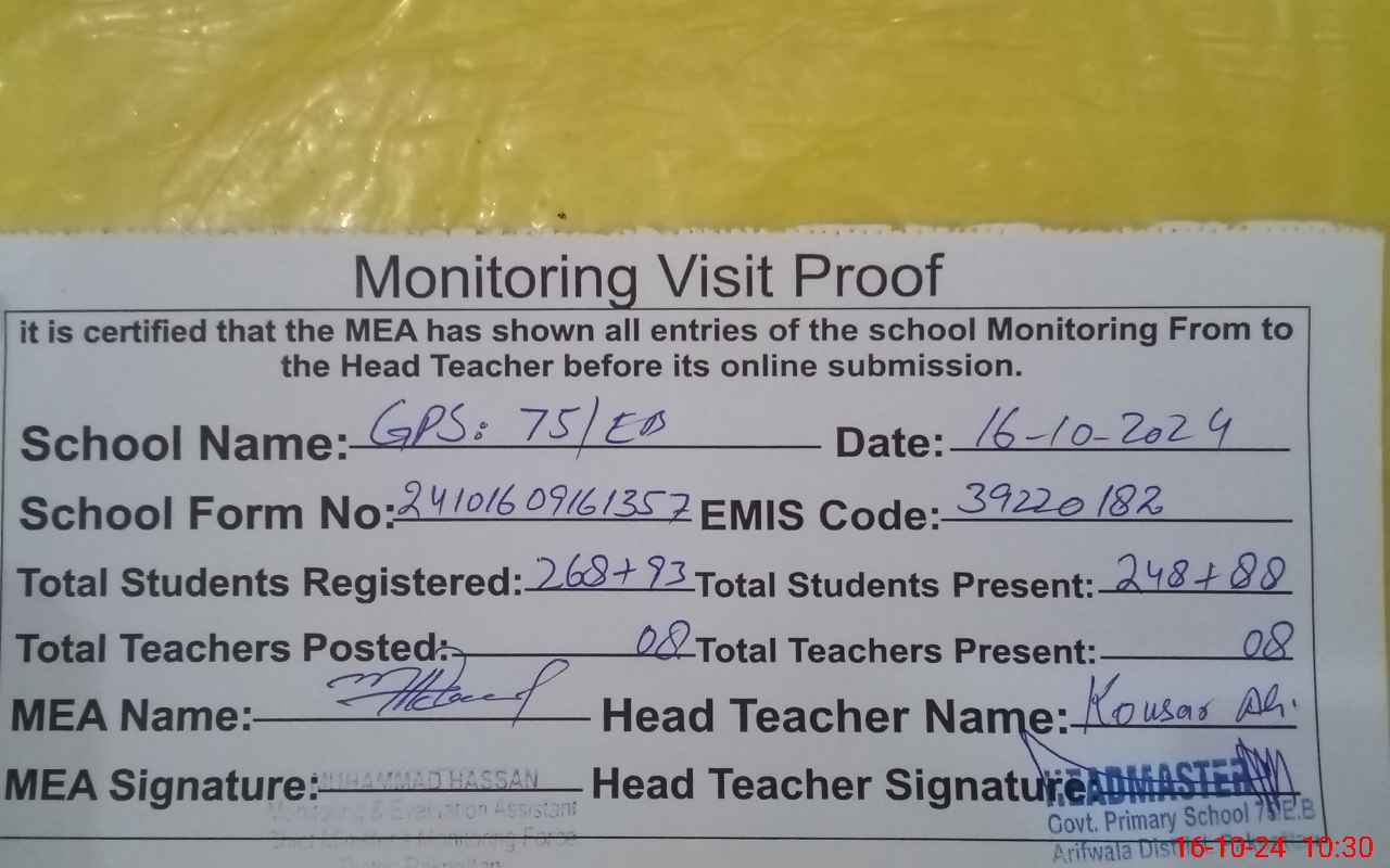 | EMIS Code: 39220182 | Name of School: GPS 75 EB P/O SAME | |||