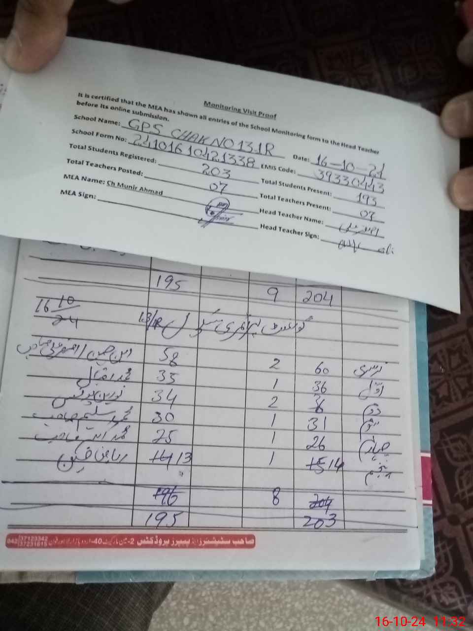 | EMIS Code: 39330443 | Name of School: GPS CHAK NO.13/1-RA | |||