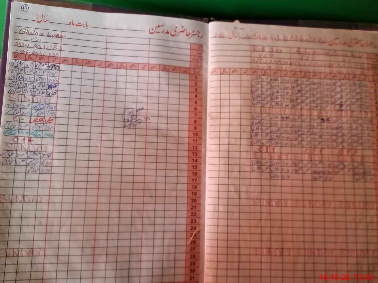 | CNIC | Full Name | Designation | R/C | Absence During Last Calender Month |