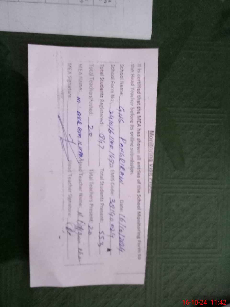 | Monitoring Date: 16-10-2024 | Start Time: 16-10-2024 11:00 AM | End Time: 16-10-2024 11:43 AM | Name of MEA: MU**** AK**** KH**** | |