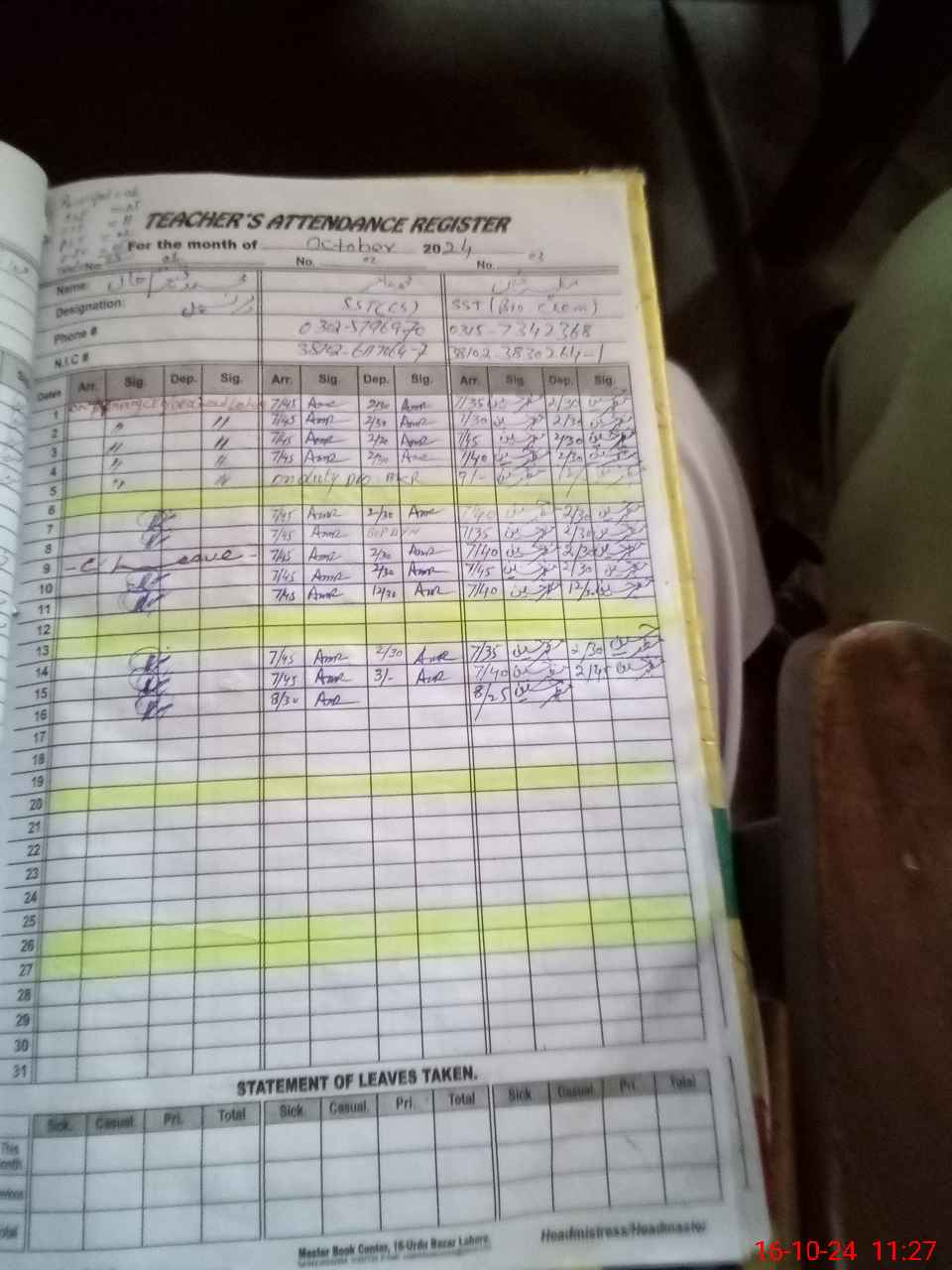 | Name: Mu**** Aa**** Designation: (School Headmaster's/Headmistress's) Sr Headmaster Phone/Cell Number: 03**** |