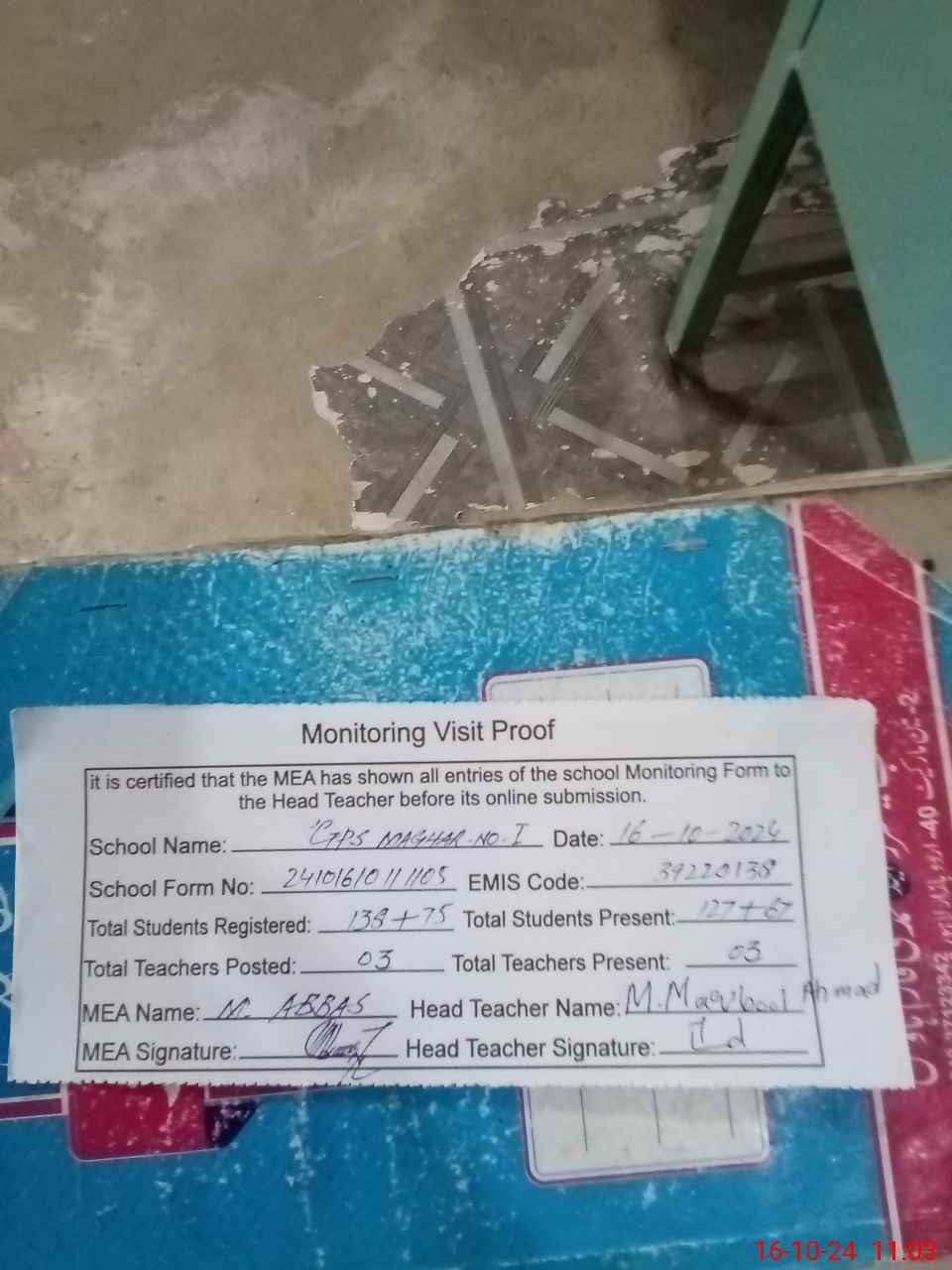 | EMIS Code: 39220138 | Name of School: GPS MAGHER NO. 1 | |||