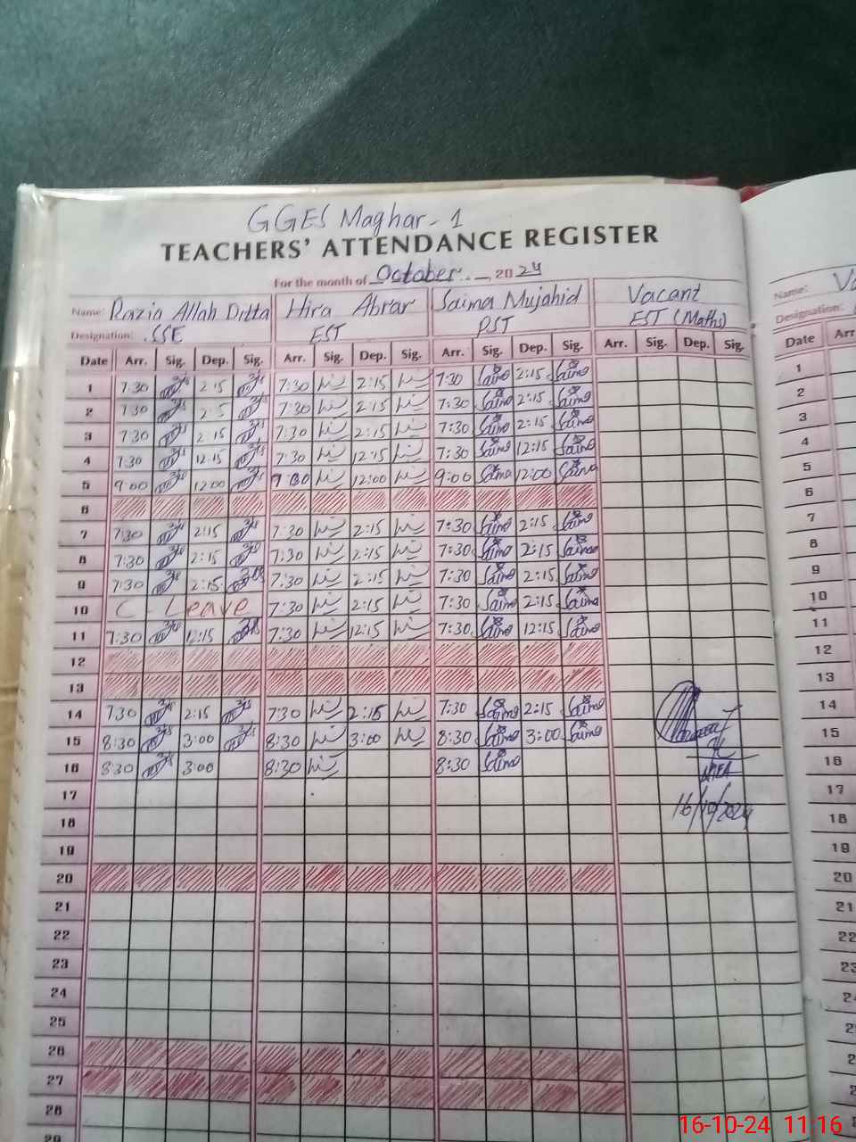 | Monitoring Date: 16-10-2024 | Start Time: 16-10-2024 11:14 AM | End Time: 16-10-2024 12:05 AM | Name of MEA: Mu**** Ab**** | |
