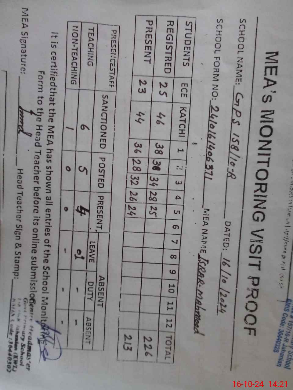 | EMIS Code: 36440302 | Name of School: GPS 158/10-R, JAHANIAN | |||