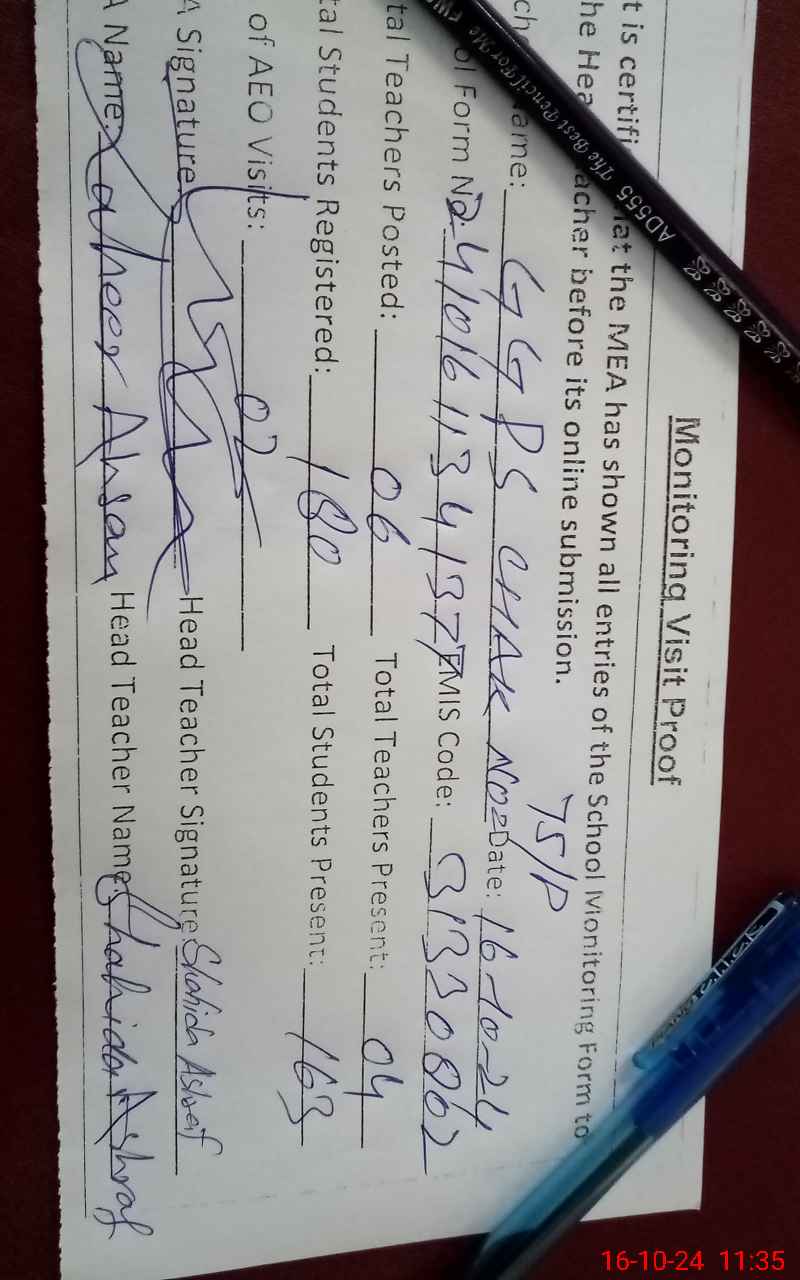 | EMIS Code: 31330802 | Name of School: GGPS CHAK 75/P | |||