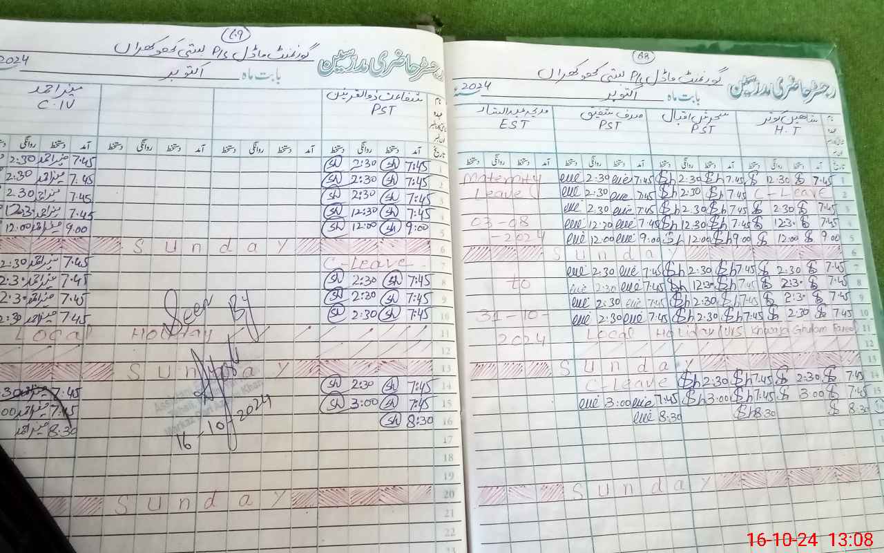 | CNIC | Full Name | Designation | R/C | Absence During Last Calender Month |