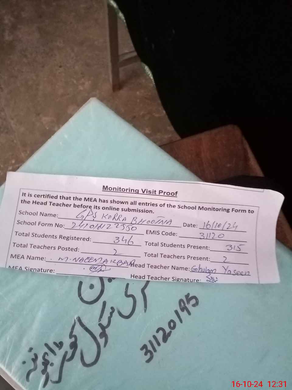 | EMIS Code: 31120195 | Name of School: GPS KORRA BHOOTNA | |||