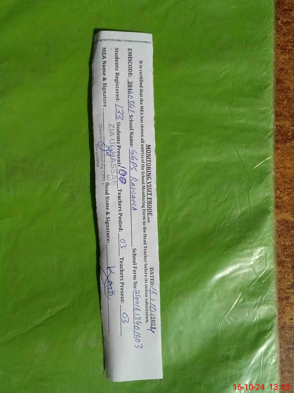 | EMIS Code: 38460541 | Name of School: GGPS RAWANA | |||