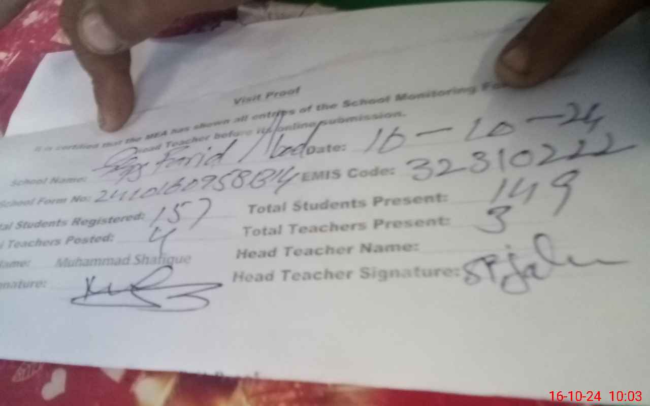 | Name: Fa**** Ya**** Designation: (School Headmaster's/Headmistress's) PST Phone/Cell Number: 03**** |