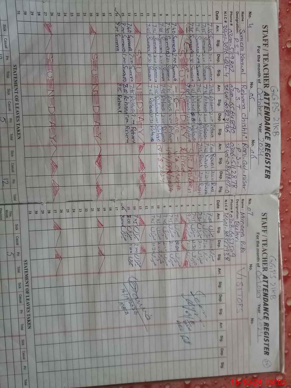 | CNIC | Full Name | Designation | R/C | Absence During Last Calender Month |
