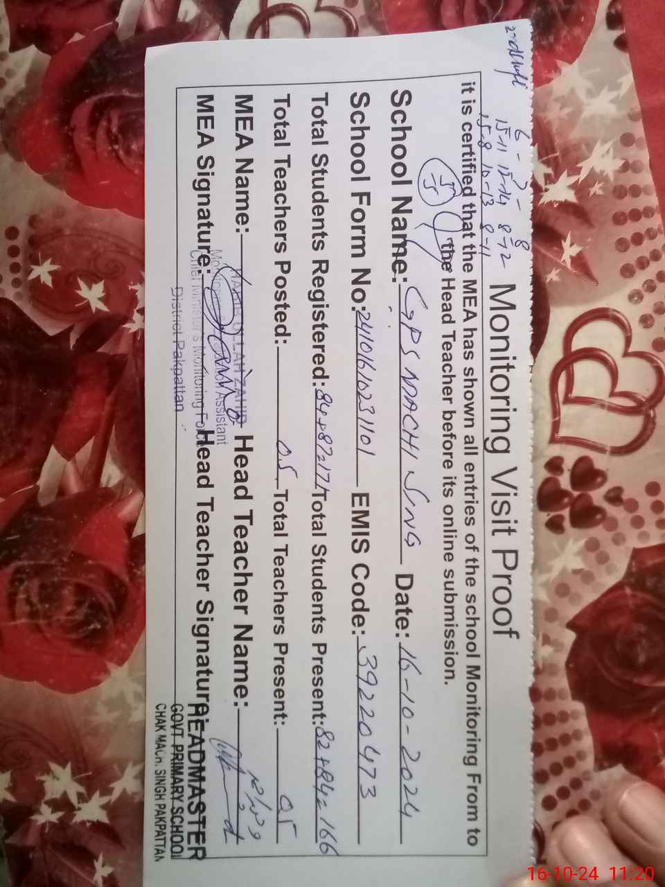 | EMIS Code: 39220473 | Name of School: GPS CHAK MACHI SINGH | |||