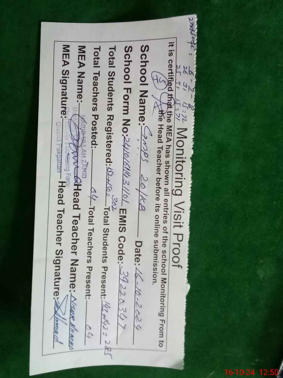 | EMIS Code: 39220347 | Name of School: GMPS CHAK NO. 20 KB | |||