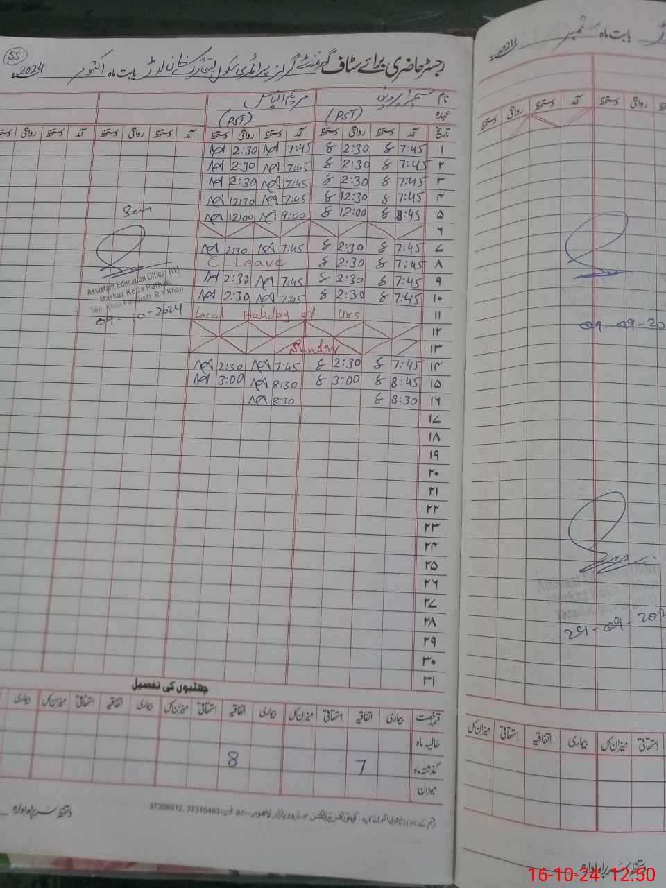| Name: Su**** Pe**** Designation: (School Headmaster's/Headmistress's) PST Phone/Cell Number: 03**** |