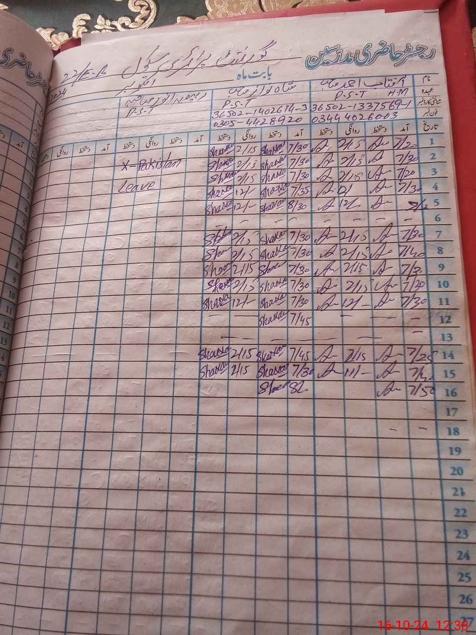 | Name: AF**** AH**** Designation: (School Headmaster's/Headmistress's) PST Phone/Cell Number: 03**** |