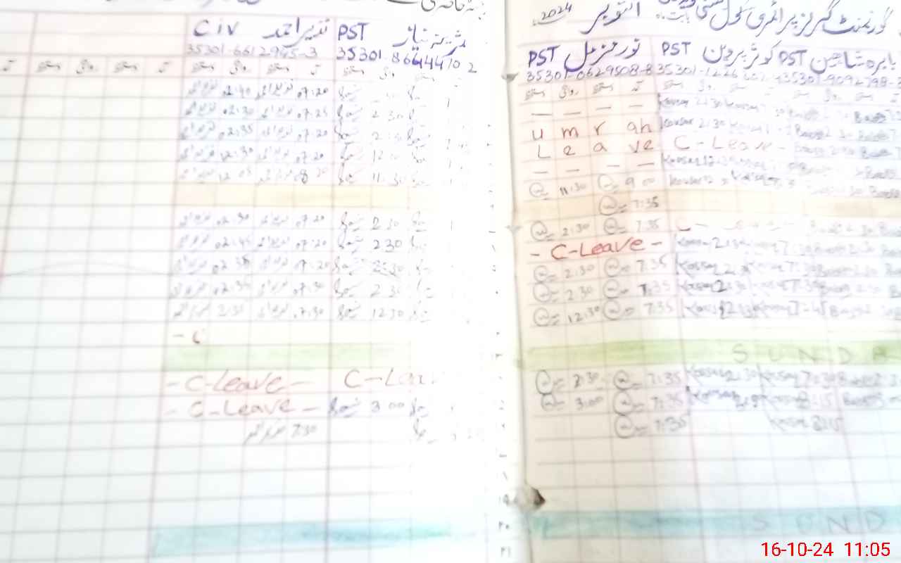 | Leave | Duty | Absent | Maternity | Medical | Ex- Pak |