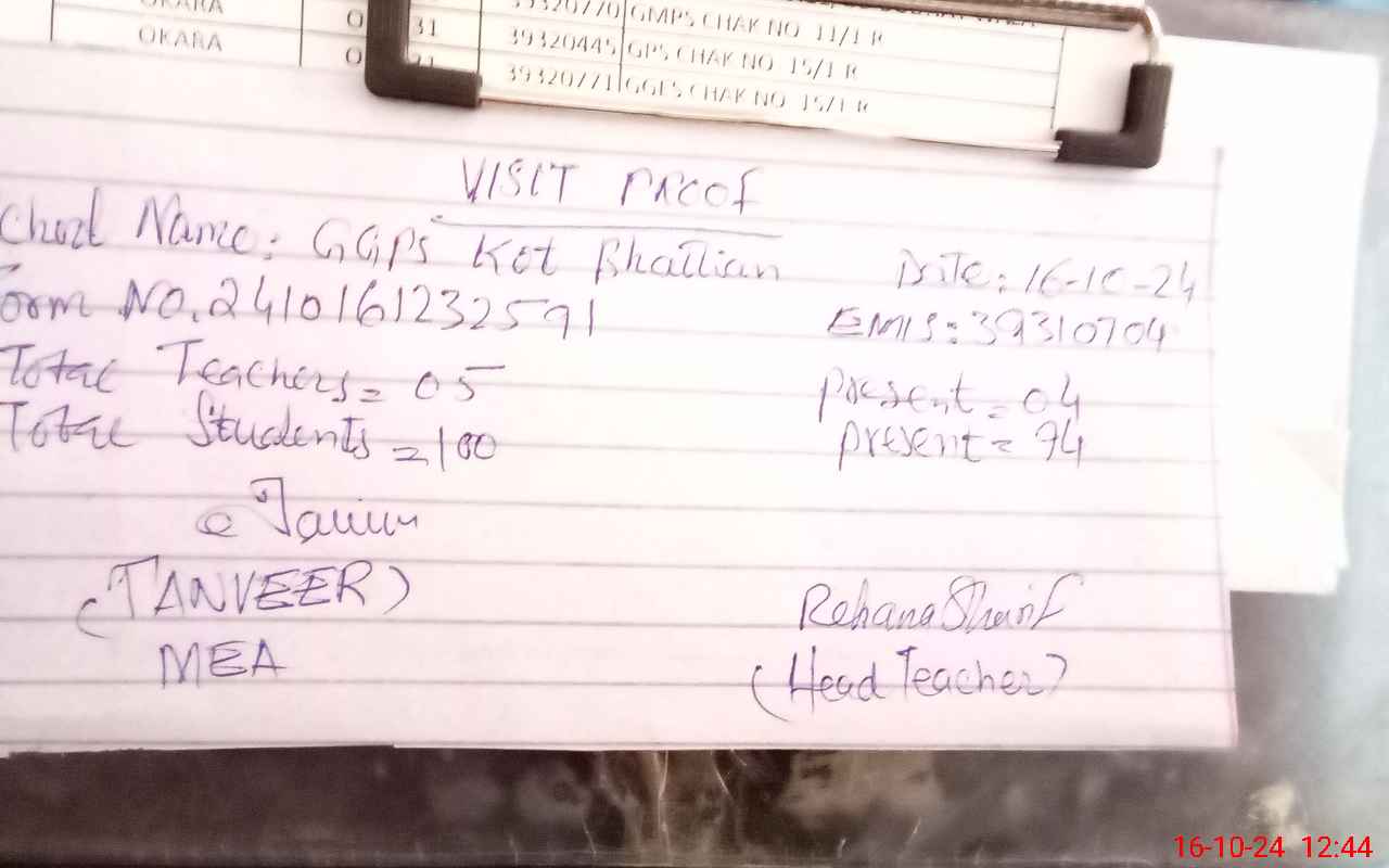 | EMIS Code: 39310704 | Name of School: GGPS KOT BHATIAN | |||