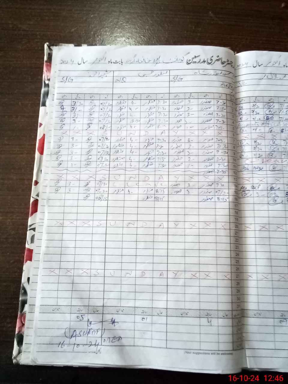 | CNIC | Full Name | Designation | R/C | Absence During Last Calender Month |