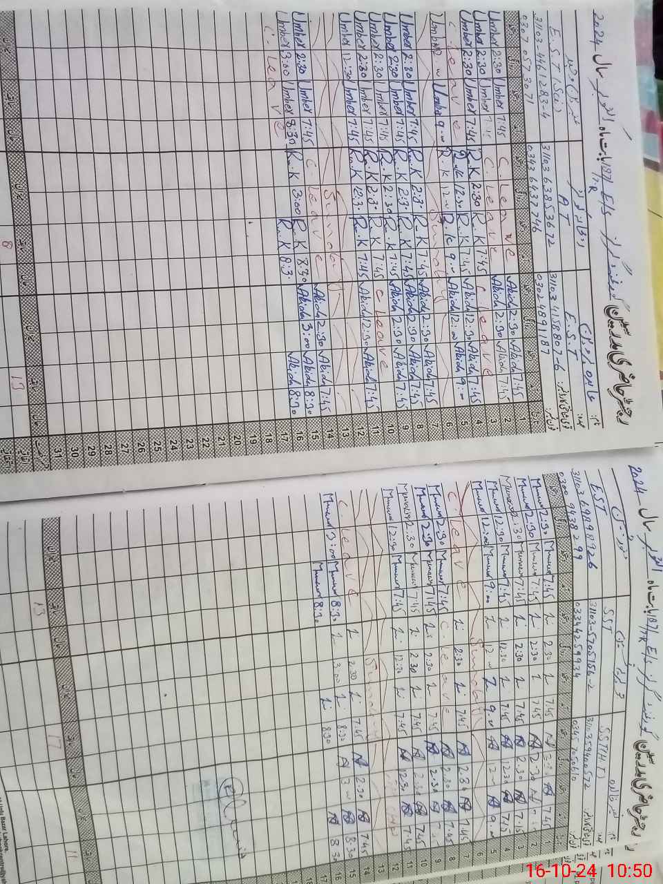 | Leave | Duty | Absent | Maternity | Medical | Ex- Pak |