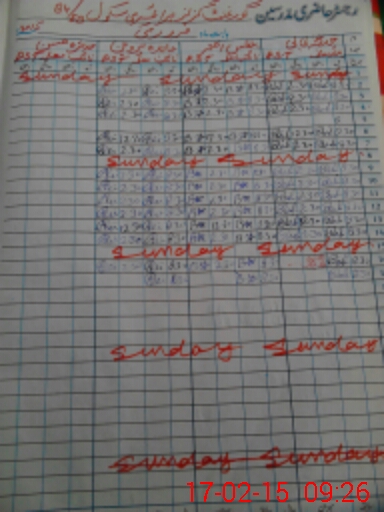 | CNIC | Full Name | Designation | R/C | Absence During Last Calender Month |