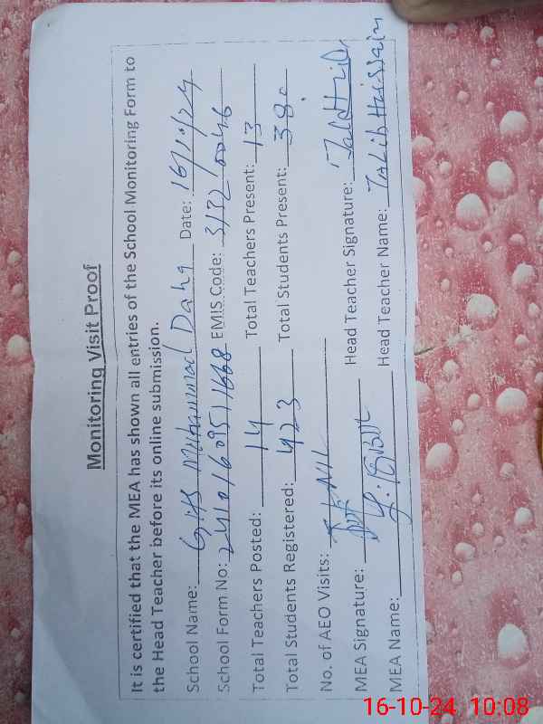 | EMIS Code: 31320046 | Name of School: GHS MUHAMMAD DAHA | |||