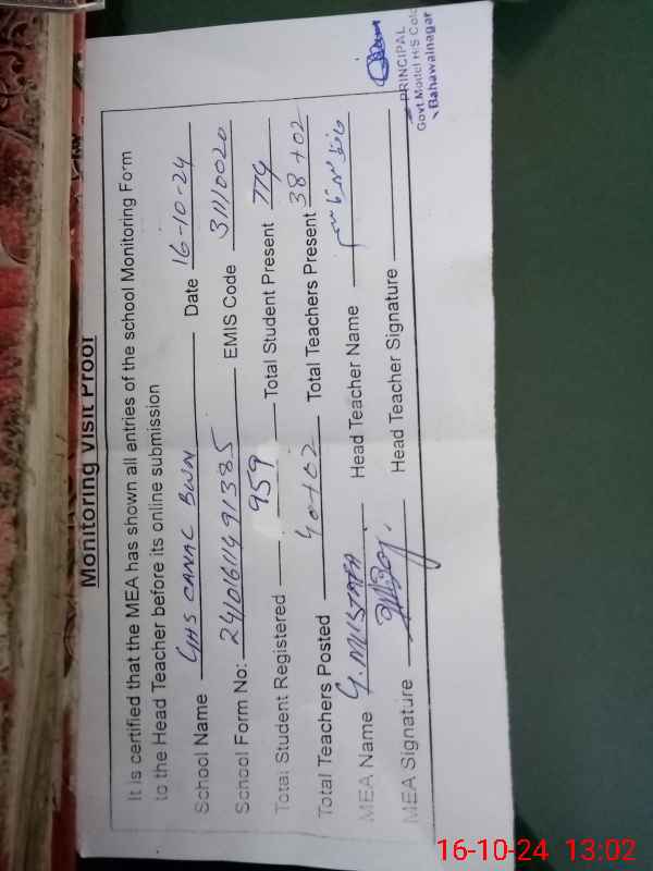 | EMIS Code: 31110020 | Name of School: GHS CANAL COLONY BAHAWALNAGAR | |||