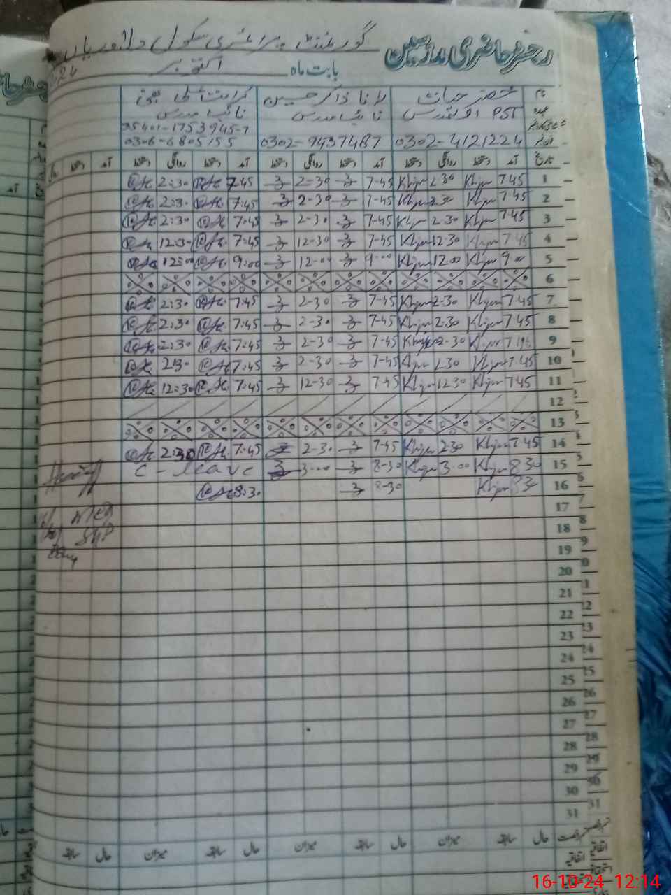 | Name: KH**** HA**** Designation: (School Headmaster's/Headmistress's) PST Phone/Cell Number: 03**** |