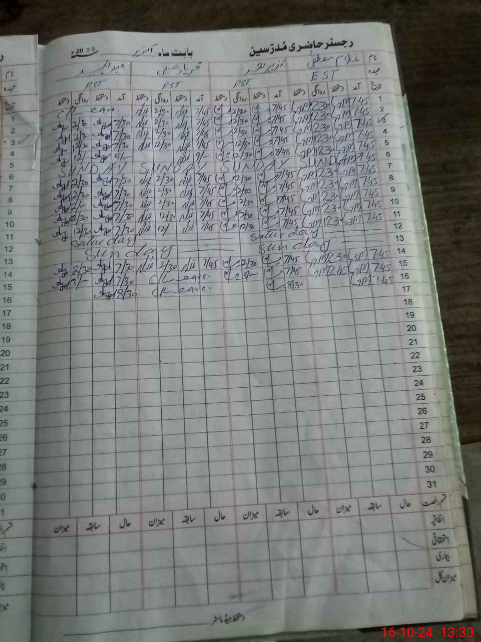 | 35**** | Fa**** Al**** | PST | Regular | 2 | 0 | 0 | 0 | 0 | 0 | 0 | 0 | 2 | Casual |