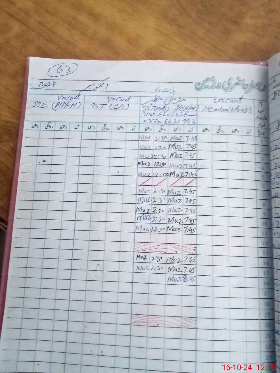 | Name: MU**** MA**** Designation: (School Headmaster's/Headmistress's) SST Phone/Cell Number: 03**** |