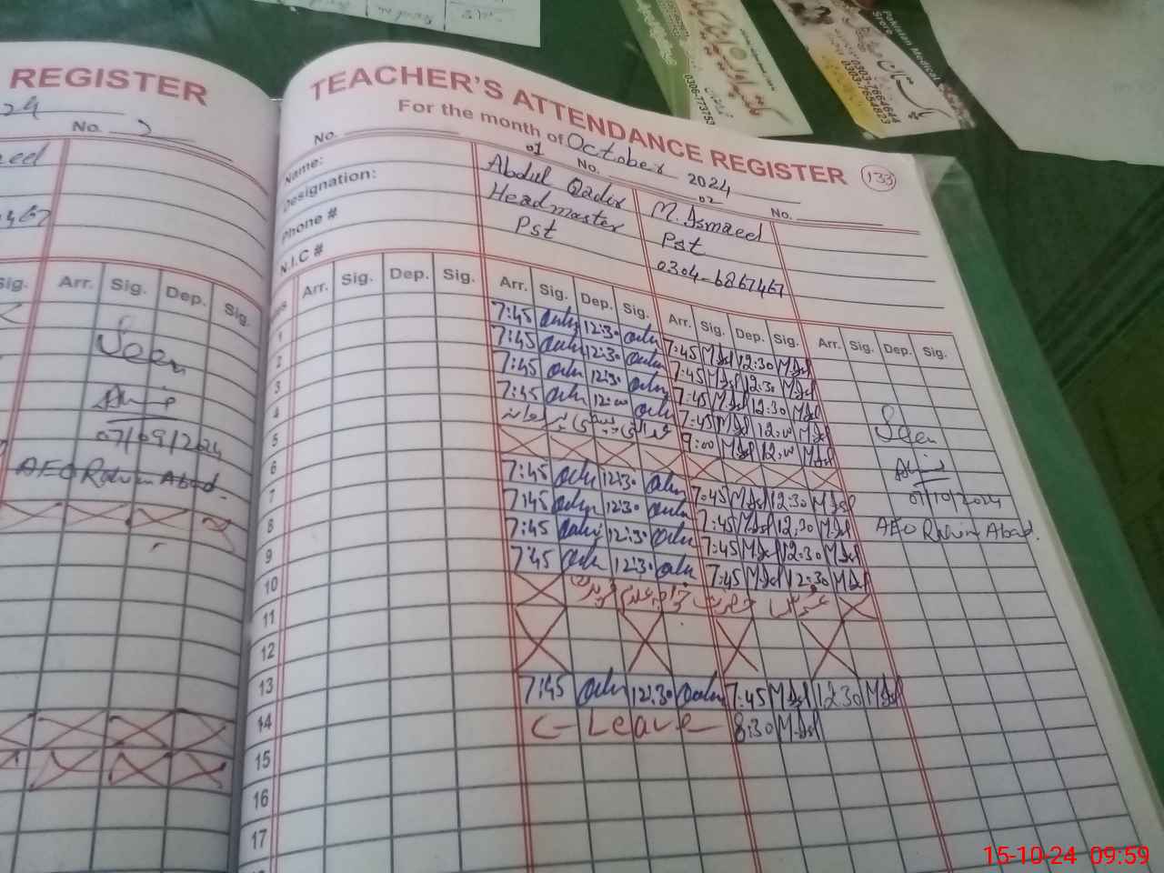 | Name: Ab**** Qa**** Designation: (School Headmaster's/Headmistress's) PST Phone/Cell Number: 03**** |
