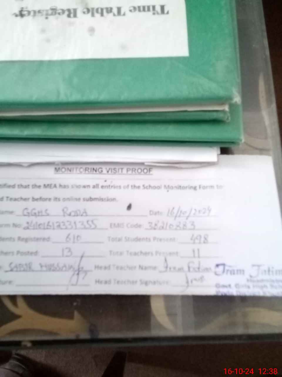 | Attendance Register | Head Teacher | MEA with School | Visit Proof |
