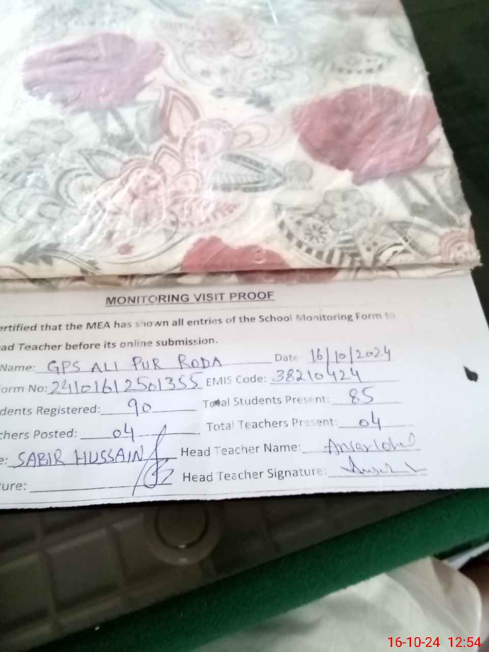 | EMIS Code: 38210424 | Name of School: GPS ALI PUR RODA | |||