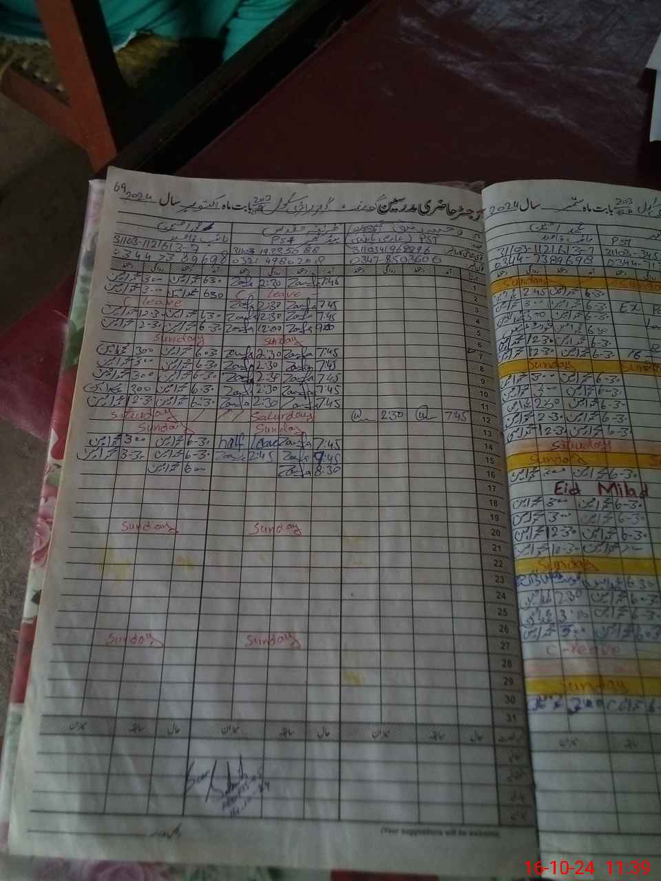 | CNIC | Full Name | Designation | R/C | Absence During Last Calender Month |