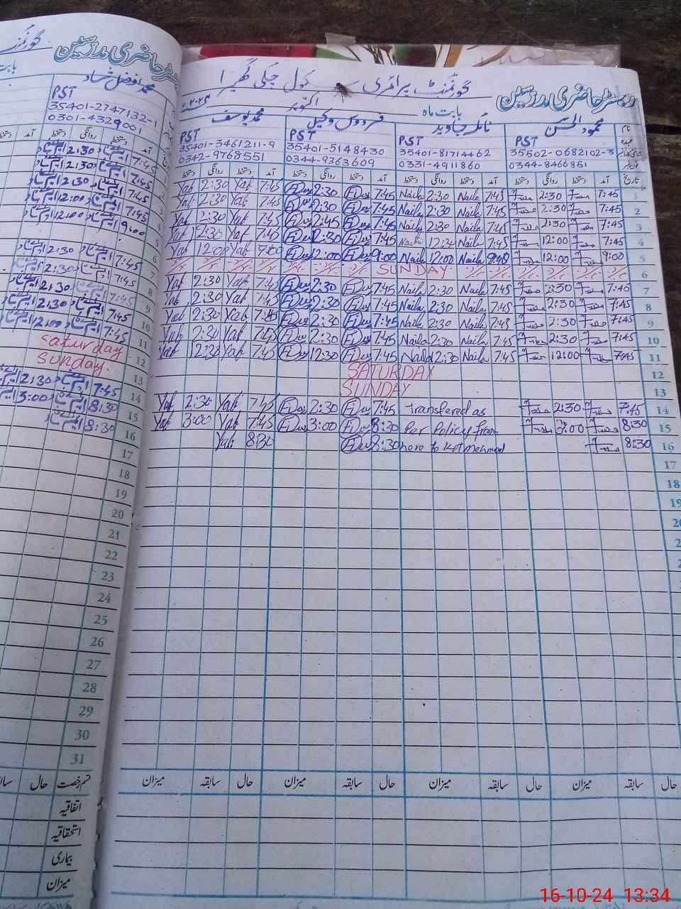 | CNIC | Full Name | Designation | R/C | Absence during last cal. month |
