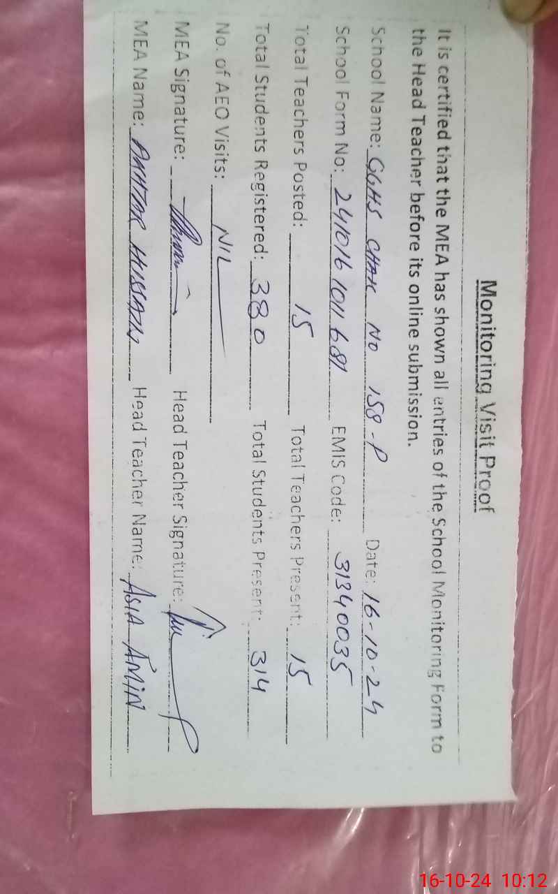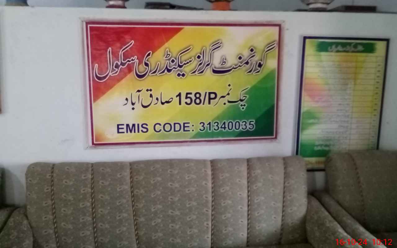 | EMIS Code: 31340035 | Name of School: GGHS CHAK NO. 158/P | |||