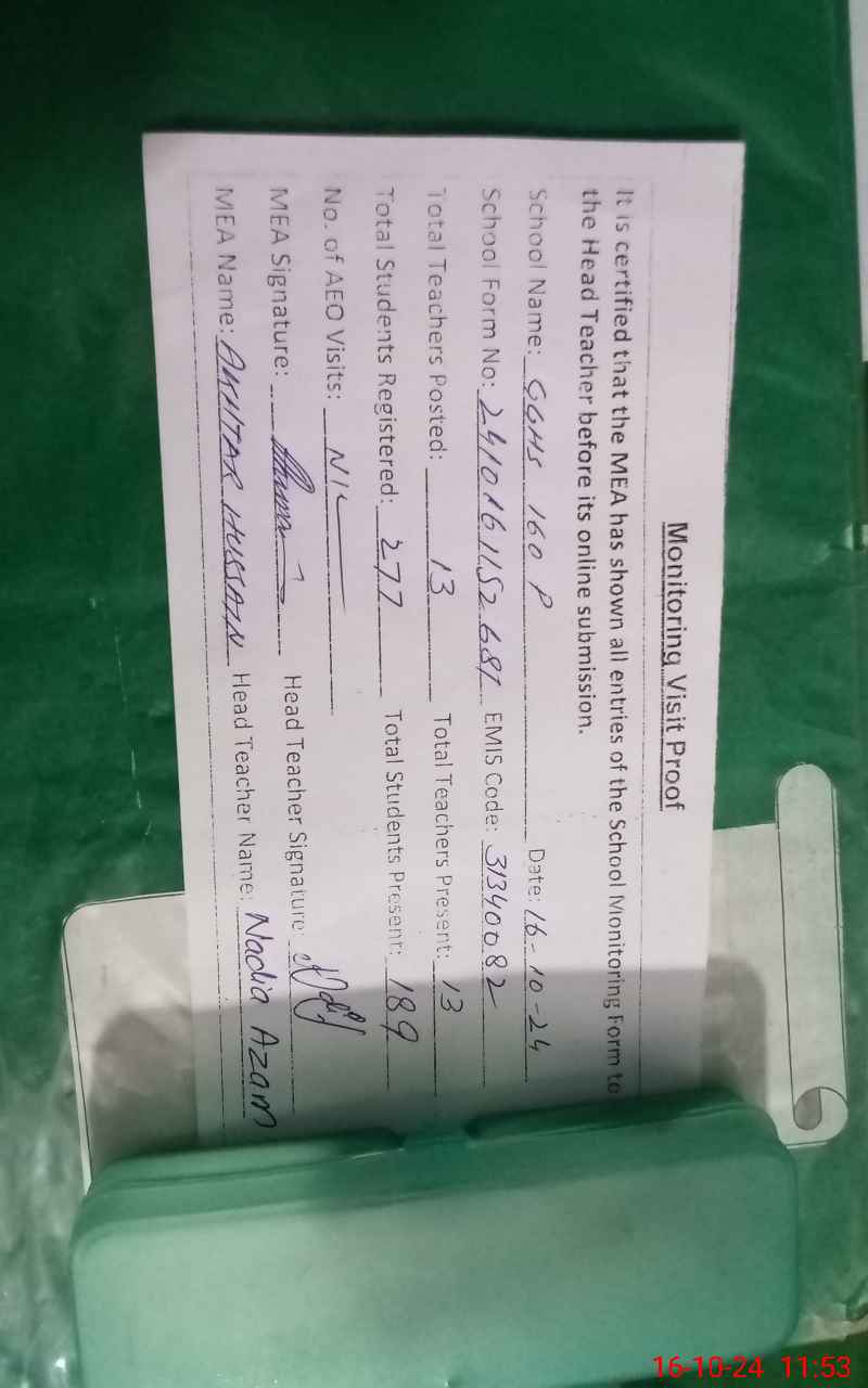 | EMIS Code: 31340082 | Name of School: GGHS 160/P | |||