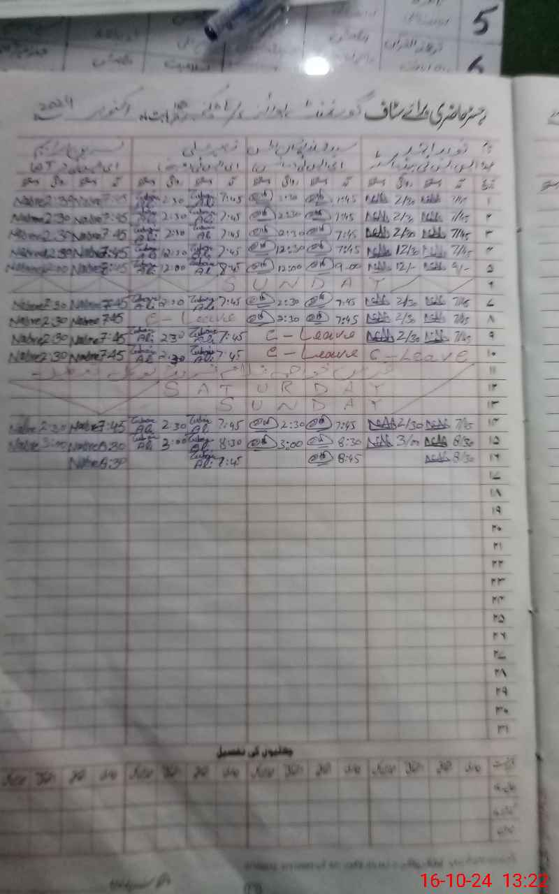 | 31**** | Ab**** Sa**** | 2 | 0 | 0 | 30 | 0 | 0 | 0 | 0 | 0 | 0 | Absent (Un-Authorized) | |