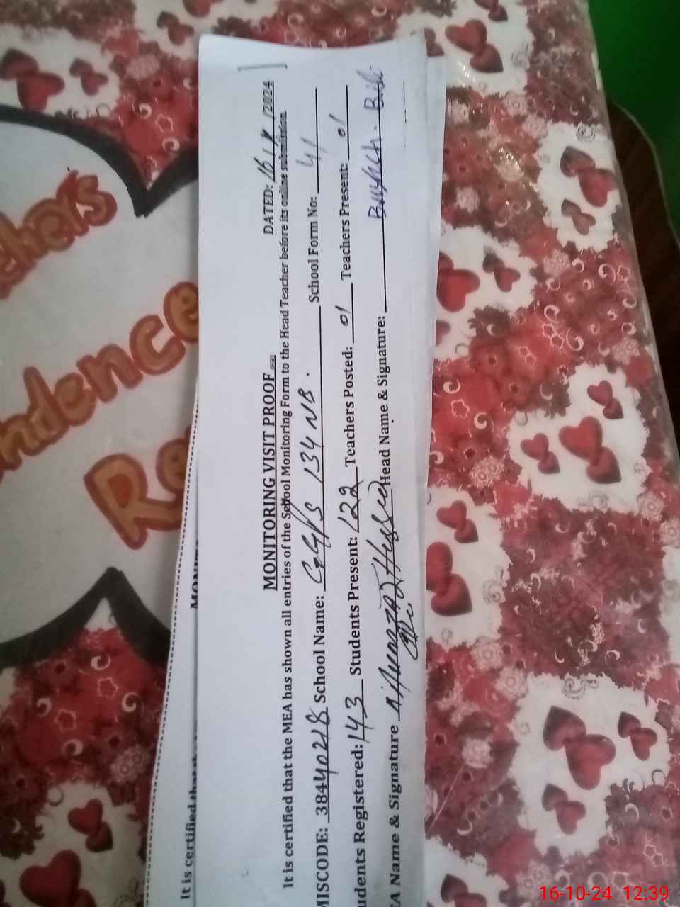 | Certified that this School was Inspected by the Undersigned MEA/DMO Today and the Information Stated Above is as Per Record. | |||||