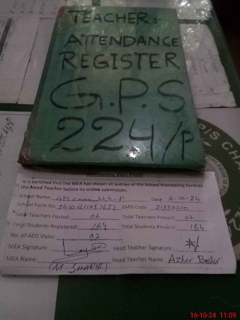 | EMIS Code: 31330210 | Name of School: GPS CHAK NO. 224/P | |||
