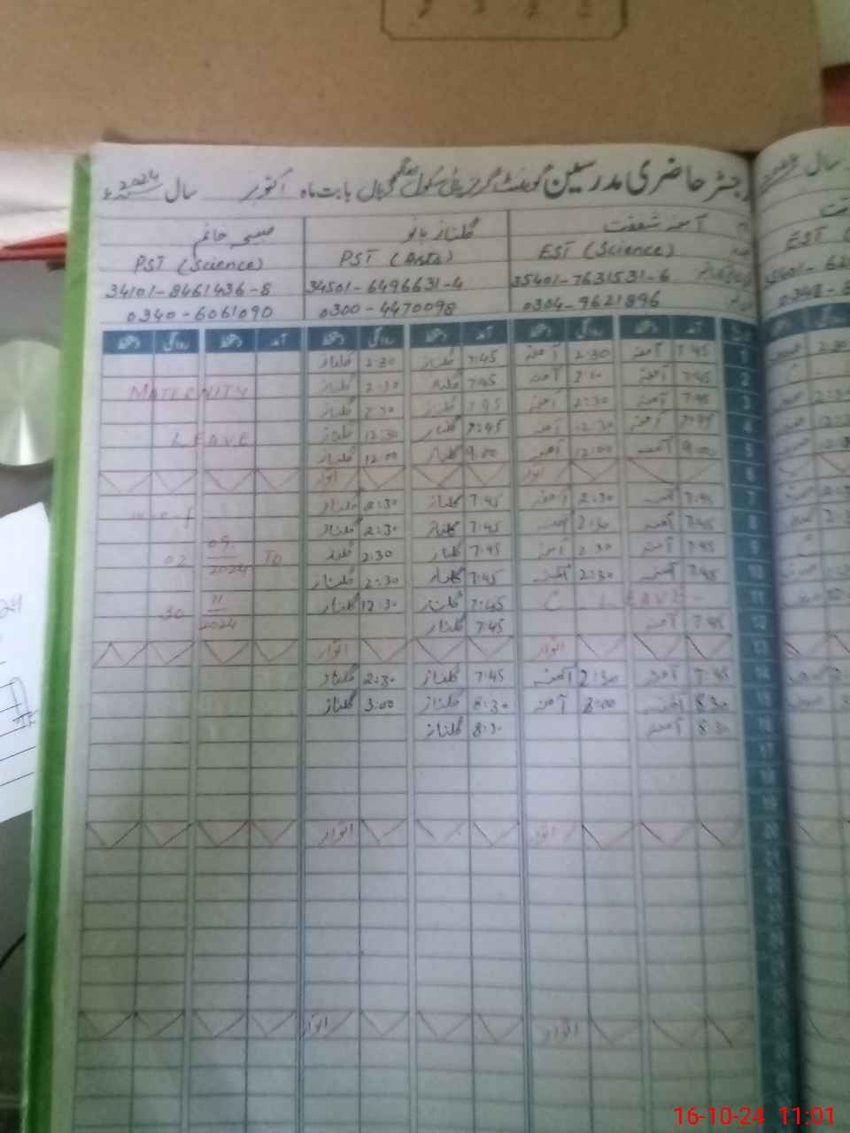 | 34**** | Sa**** Kh**** | PST | Regular | 30 | 0 | 0 | 30 | 0 | 0 | 0 | 0 | 0 | Maternity |