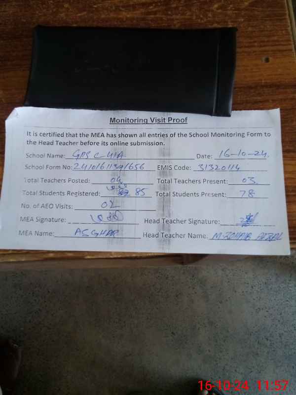 | EMIS Code: 31320114 | Name of School: GPS CHAK 41/A | |||