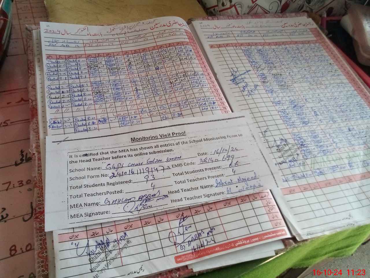 | Attendance Register | Head Teacher | MEA with School | Visit Proof |