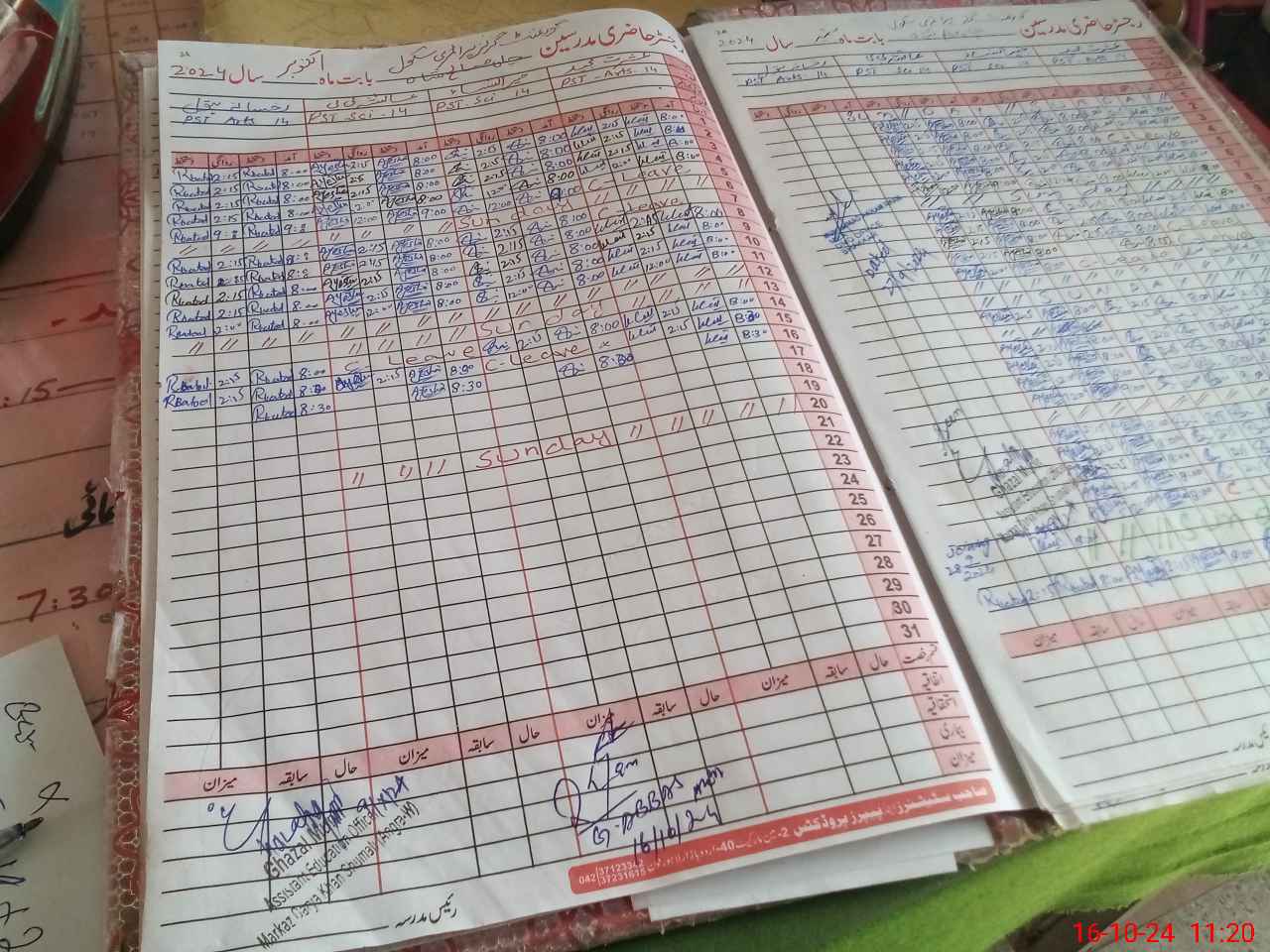 | CNIC | Full Name | Designation | R/C | Absence During Last Calender Month |