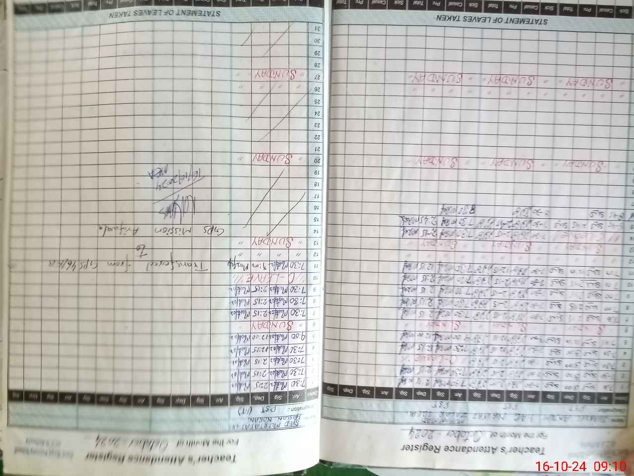 | Leave | Duty | Absent | Maternity | Medical | Ex- Pak |