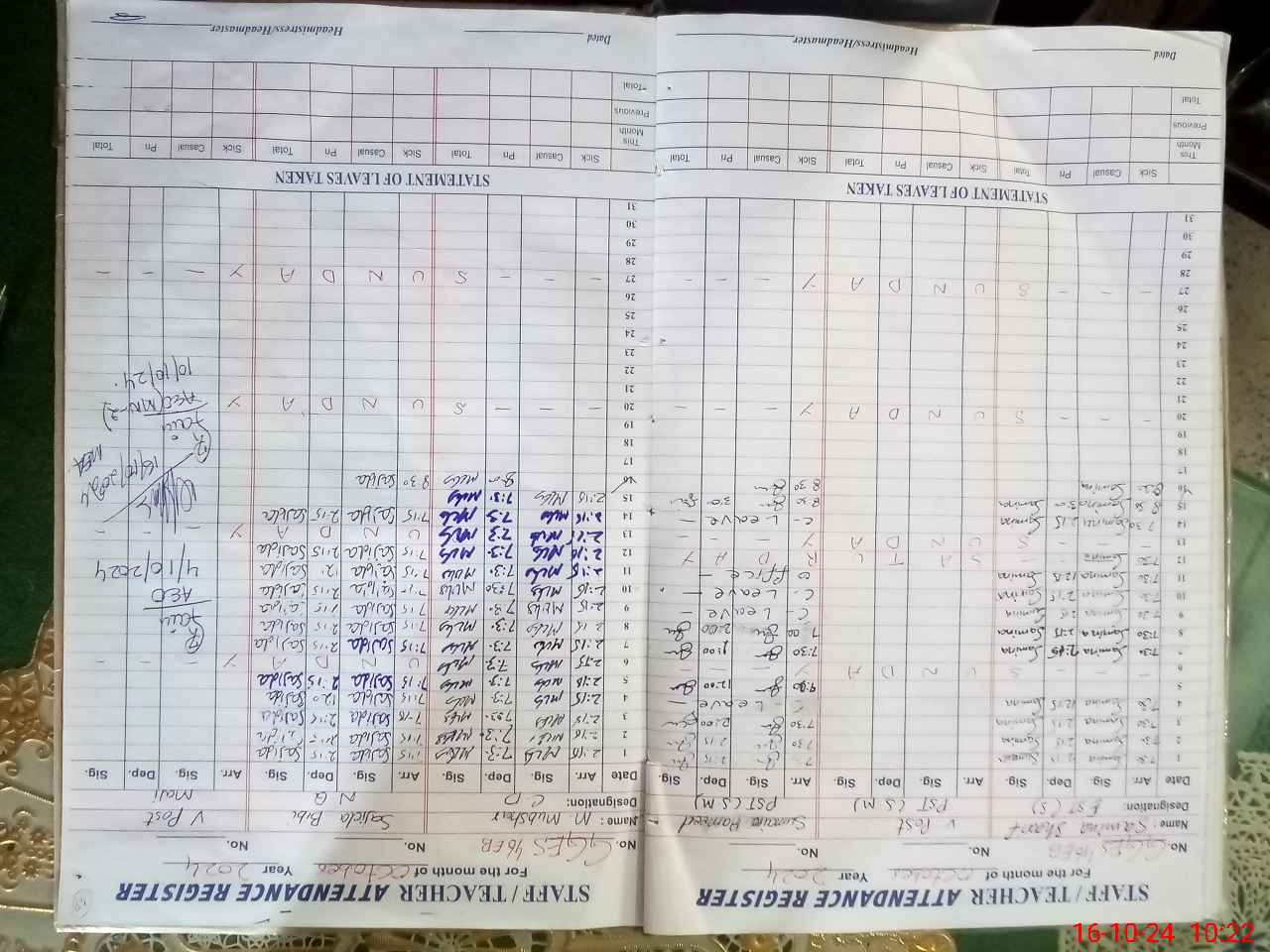 | Leave | Duty | Absent | Maternity | Medical | Ex- Pak |