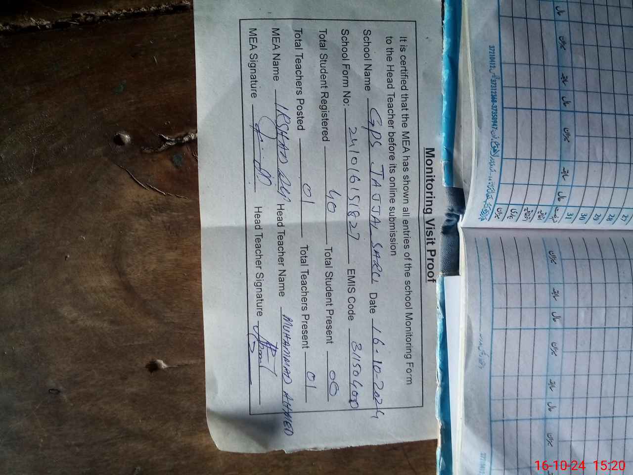 | EMIS Code: 31150400 | Name of School: GPS JAJJAL SARU | |||