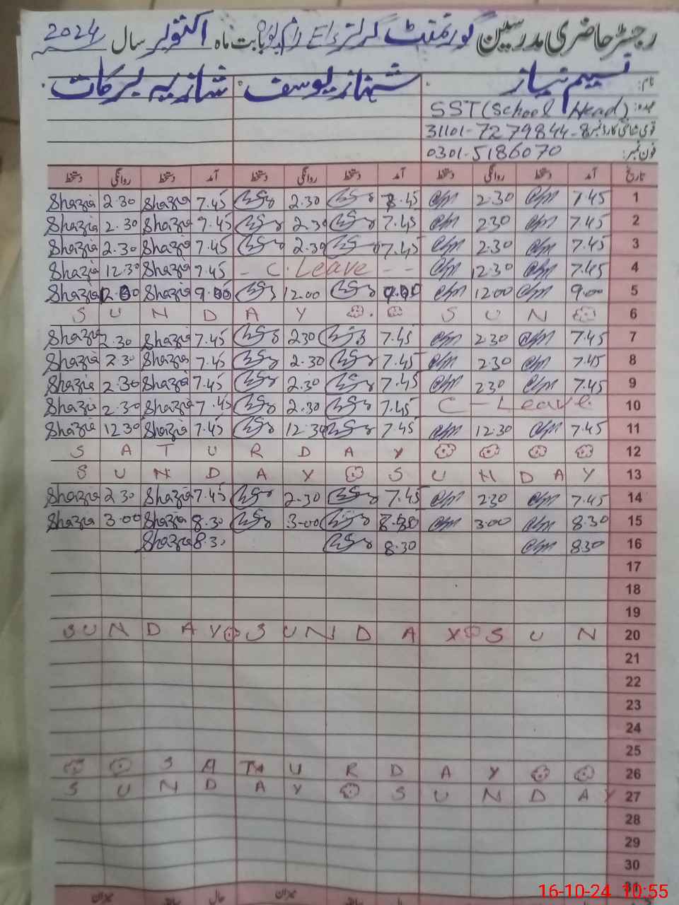 | Name: Na**** Ni**** Designation: (School Headmaster's/Headmistress's) SST Phone/Cell Number: 03**** |