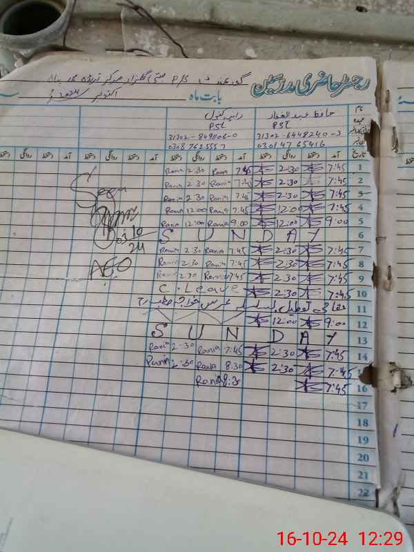 | CNIC | Full Name | Designation | R/C | Absence During Last Calender Month |
